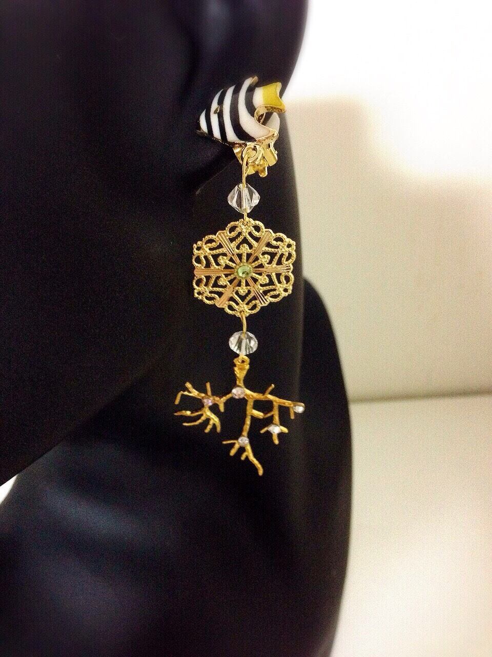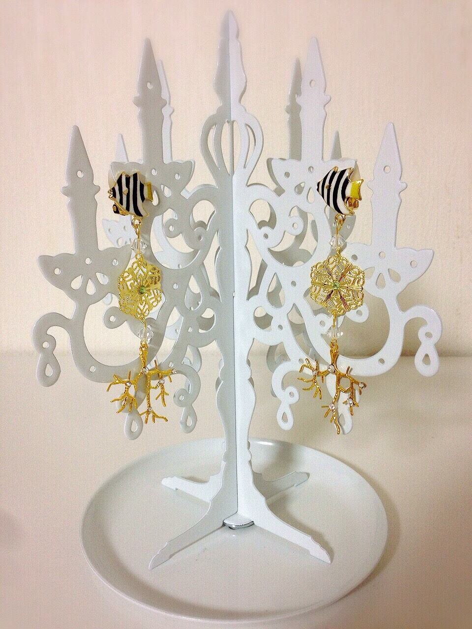 リアルな模様のおさかなと、スワロフスキーを散りばめたキラキラサンゴのイヤリング♡