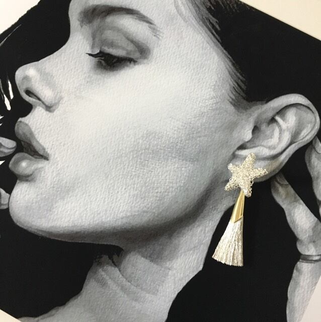 ワイヤーで型取ったキラキラ輝く星に、16k gold plate素材を使用したシンプルエレガントなタッセルをプラスしました。