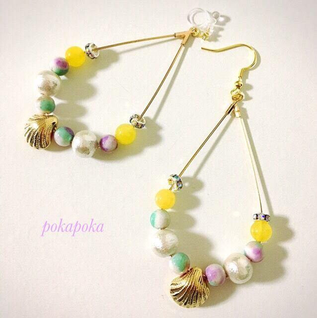 ピアス仕様の場合はフック、イヤリング仕様の場合はノンホールピアスを使います(写真参照)。