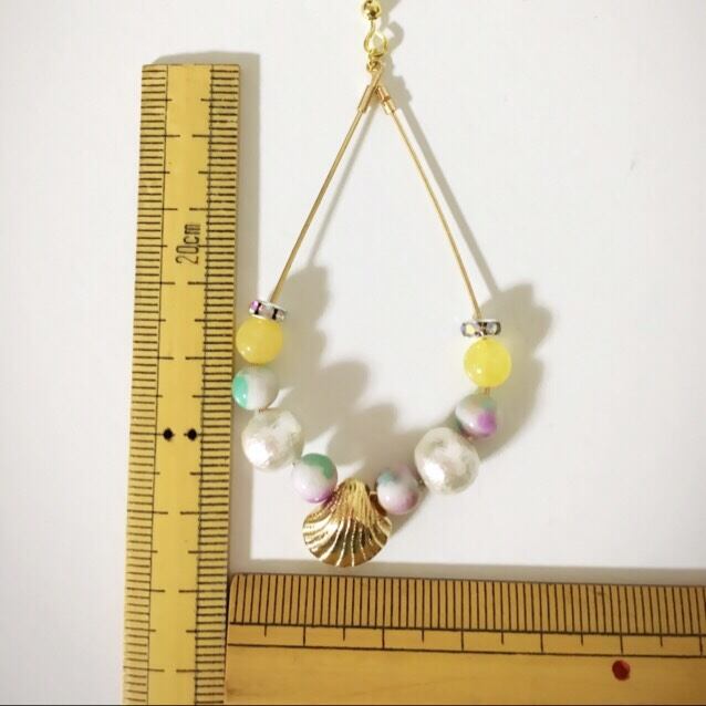 丸いキレイなフォルムのシェルに、二種類の天然石キャンディクオーツを合わせました。