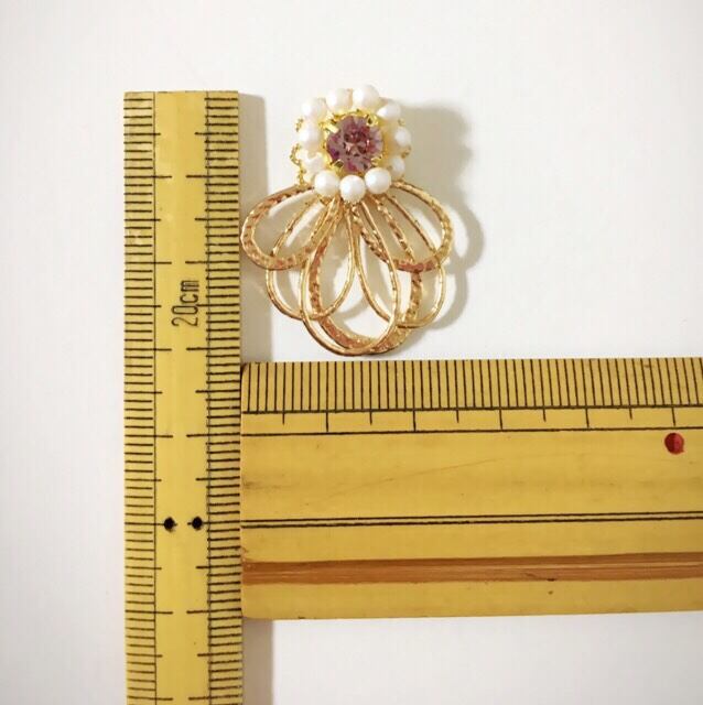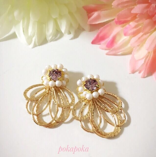 6mm アメジストのSwarovskiの周りを、3㎜Swarovski pearlでクルリと囲みました。