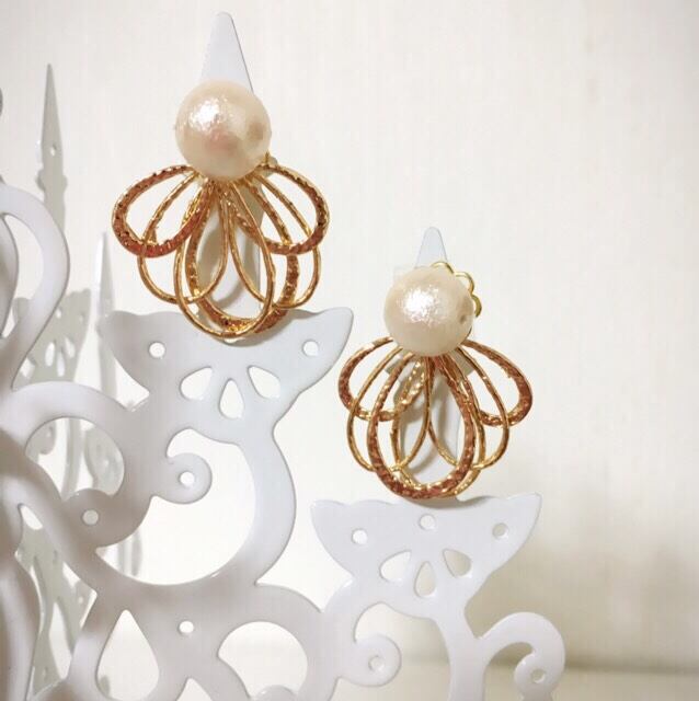 cotton pearlを一粒のみ乗せ、シンプルキレイにまとめました。