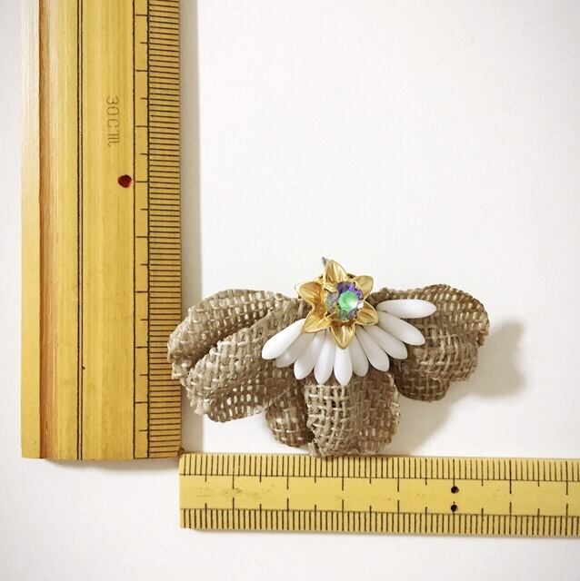 夏らしい麻と、真っ白のチェコガラス、そしてスワロフスキークリスタルパラダイスシャイン6mmを組み合わせました。