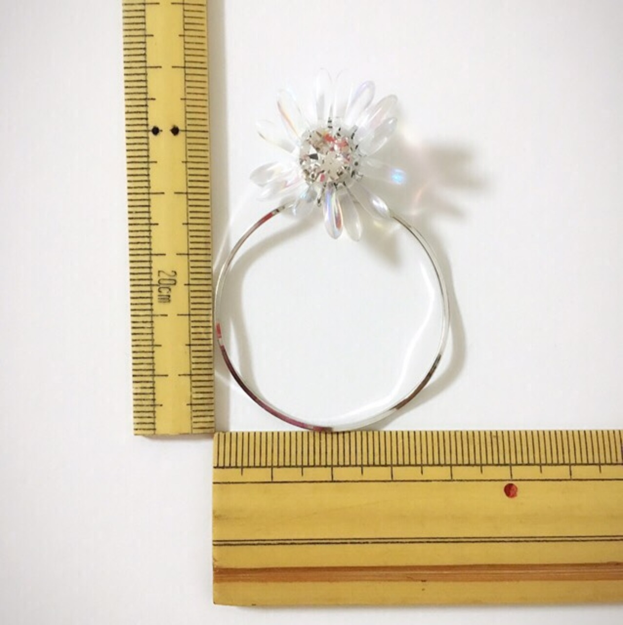 こちらの商品は、花の質感を活かすために花びら部分、スワロフスキー部分がやや動きます。