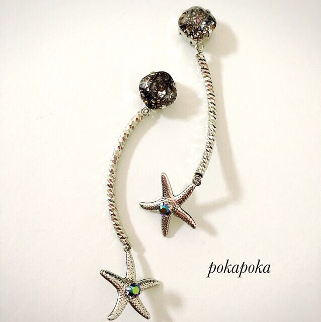 スワロフスキーのクリスタルブラックパティナとスターフィッシュを、オシャレなチューブでつないでみました。