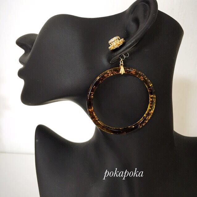 イヤリングの場合は、構造上2wayできないのでべっ甲フープを取り付けた状態での販売です。