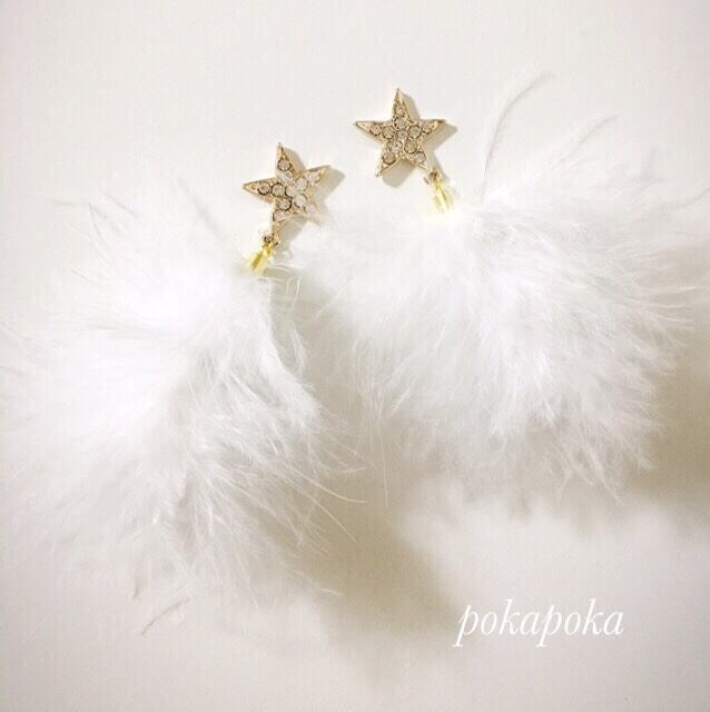 白のフェザーボアとキラキラ星を組み合わせて、ボリュームのある華やかなアクセサリーを作りました。